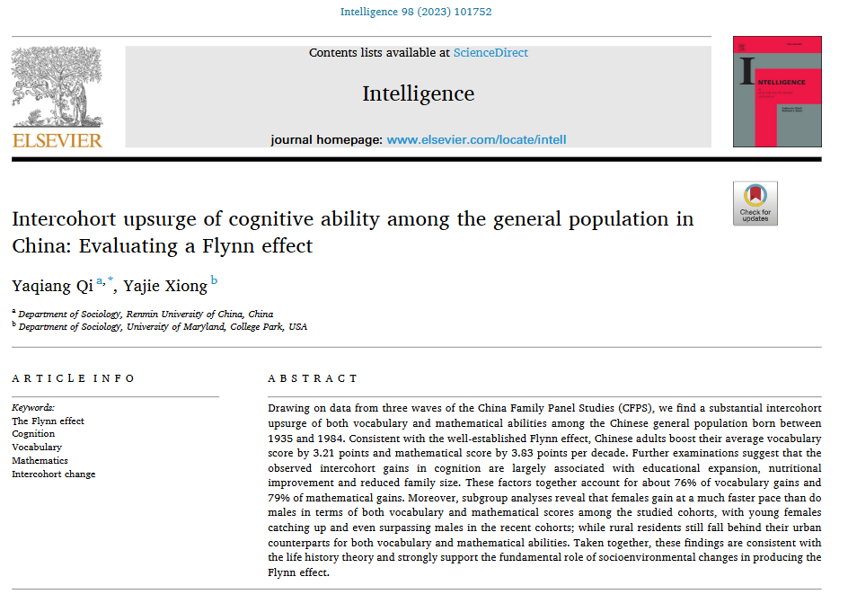 Recent studies have shown a slight decline in IQ test scores in some countries supporting the “Negative Flynn Effect” which called into question the Flynn effect’s sustainability. To evaluate the Flynn effect, the researchers examined how cognitive ability changed across different bright cohorts from 1935 to 1984 in mainland China. The study investigated the intercohort trend of cognition scores among the Chinese general population. To do this, five-year birth cohorts were constructed, and 10 groups of birth cohorts.